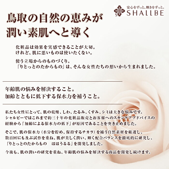 ◆りとっとのたからもの ほほうるる 「りとっと=鳥取」の自然の宝物をきゅーっと詰め込んだスキンケアシリーズです。